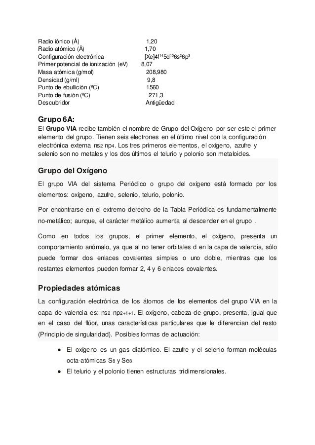 Caracteristicas del grupo 6a de la tabla periodica. Su formula es s8. Y constituyen un excelente ejemplo de como los modelos de enlace covalente y metálico son únicamente casos extremos imaginarios de una situación real más compleja de interpretar. Es necesario para quemar los.
