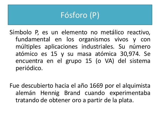 Fosforo tabla periodica caracteristicas. El fósforo común es un sólido. -Forman parte de los huesos y dientes de los animales. Es insoluble y se comporta como base fuerte.