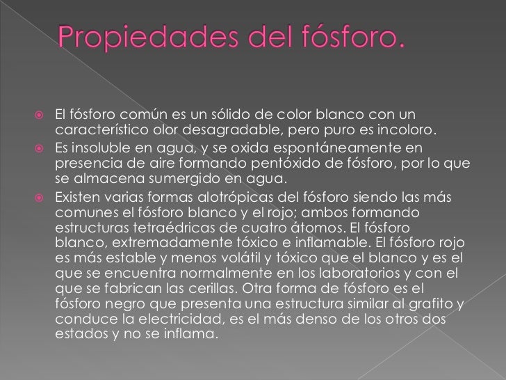 Cuando hace contacto con el aire se torna un poco inestable presentado inflamación. Ar 3d10 4s2 4p2 Radio atómico Å. El fosforo se caracteriza por ser un elemento insoluble al agua este se disuelve rápido en otros componentes como el disulfuro de carbono.