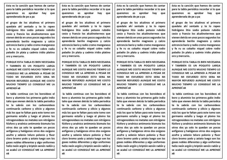 Letra De La Cancion Canta La Tabla Periodica