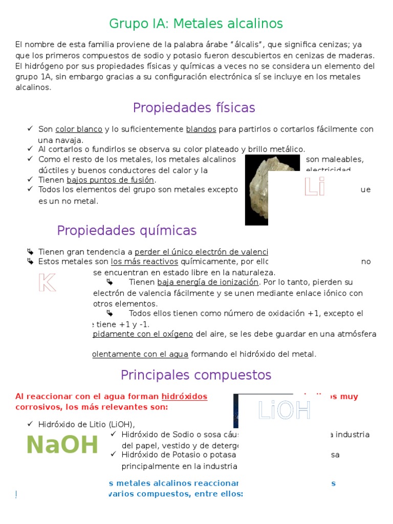 Los elementos que conforman este grupo son. ELEMENTOS DEL GRUPO IA Objetivos Diferenciar propiedades de algunas sales de litio sodio y potasio. La única excepción de este grupo es el hidrógeno que es un gas y no un metal alcalino.