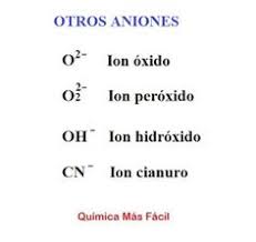 Una sola carga negativa. Los elementos VA ganan tres electrones para formar aniones con una carga de 3-. 32 Tabla de Aniones y Cationes.