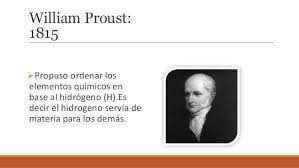 Clasificación de los elementos según William Proust 1815 Por cesard el agosto 29 2012 en Historia de la Tabla Periódica William Proust fue un químico físico y teólogo natural inglés. William Proust inglés 1815 Múltiplos de hidrógeno Los elementos químicos e. He H H Li H H H Be H H H.