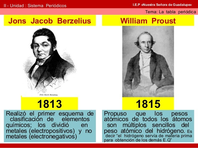 Clasificó los elementos tomando en consideración dos. Clasificacin de los elementos segn William Proust 1815 Por cesard el agosto 29 2012 en Historia de la Tabla Peridica William Proust fue un qumico fsico y telogo natural ingls. Los orígenes de éstos datan en la Prehistoria y en esta época había escasez de conocimiento científico por no decir que no había.