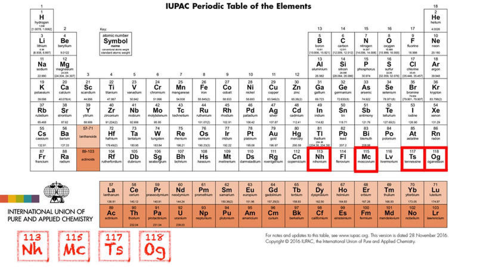 La tabla tiene un formato largo aprobado por la Unión Internacional de Química Pura y Aplicada IUPAC. The most amazing periodic table app you have ever seen. 58 El 28 de noviembre de 2016 se anunciaron los nombres oficiales y los símbolos de los últimos cuatro nuevos elementos aprobados hasta la fecha por la IUPAC Nh nihonio.