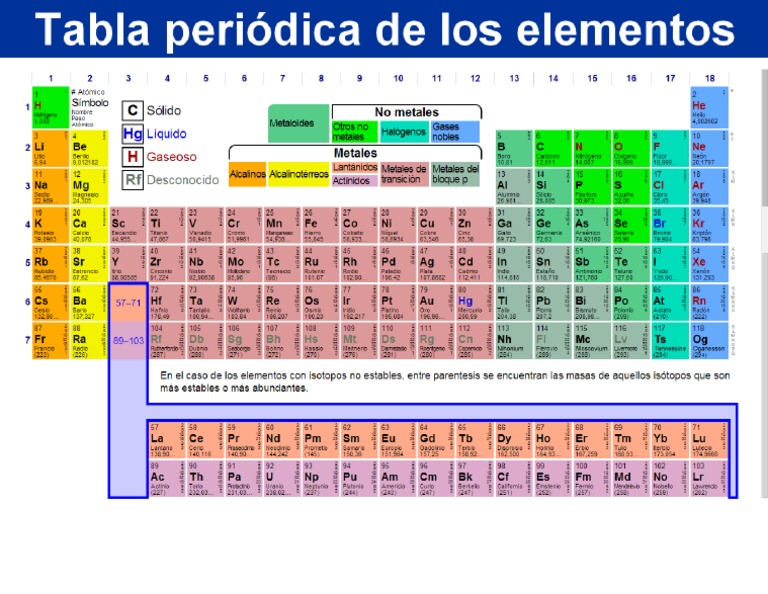 Los elementos químicos de la tabla periódica ordenados por. 116 Lv Livermorio 293 117 Ts Teneso 294 118 Og Oganesón 294 En el caso de los elementos con isotopos no estables entre parentesis se encuentran las masas de aquellos isótopos que son más estables o más abundantes. 18 - Energía de ionización.