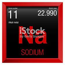 Sodio Elemento químico símbolo Na número atómico 11 y peso atómico 229898. El sodio es un metal blando de color blanco plateado y muy reactivo. Sodio Symbol Sodium In Spanish Language Element Number 11 Of.